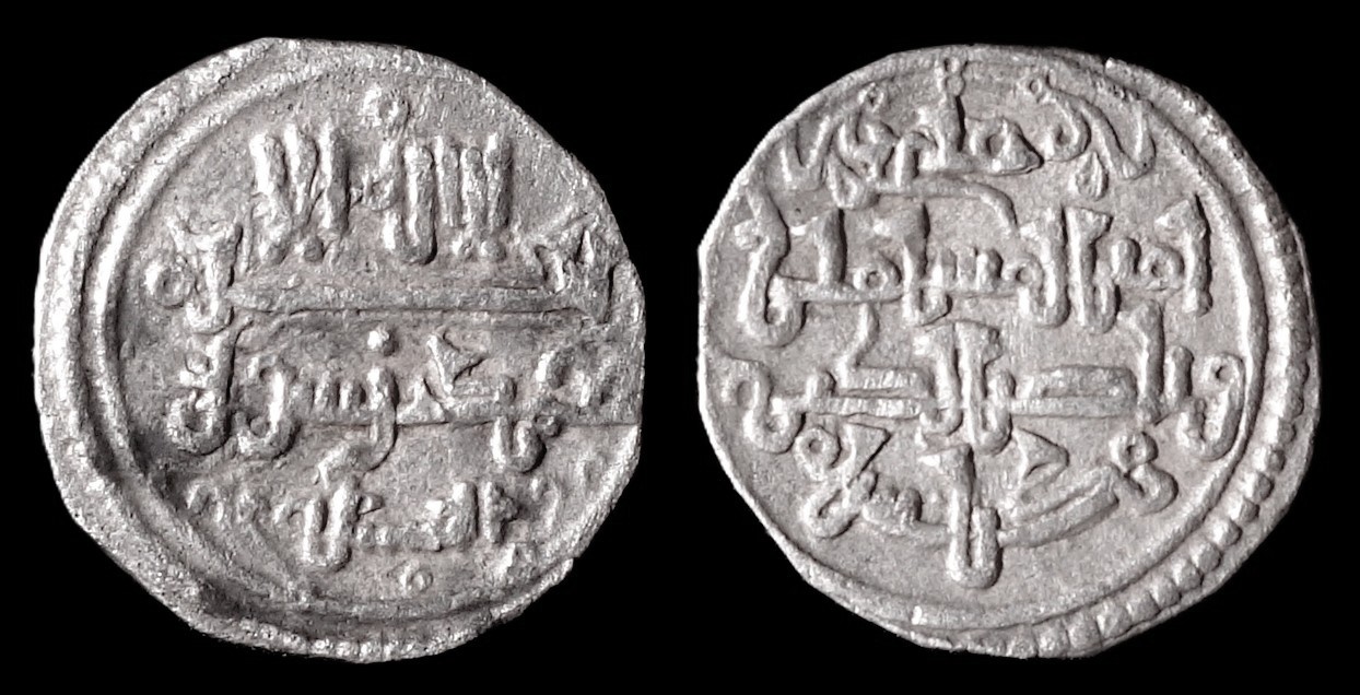 #1.14.6.35 `Ali ibn Yusuf Qirat (0.92g 12mm) citing the heir Sir No mint, no date Benito Cf2, Hazard 983, Br. 941, 942 Eust. 340, Vives 1774, Album 467.2 To click on the picture provides a larger image. Any comment ?: webmaster@coins.alif2.fr |