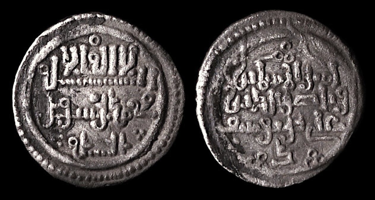 #1.14.6.35 `Ali ibn Yusuf Qirat (0.92g 12mm) citing the heir Sir No mint, no date Benito Cf2, Hazard 983, Br. 941, 942 Eust. 340, Vives 1774, Album 467.2 To click on the picture provides a larger image. Any comment ?: webmaster@coins.alif2.fr |
